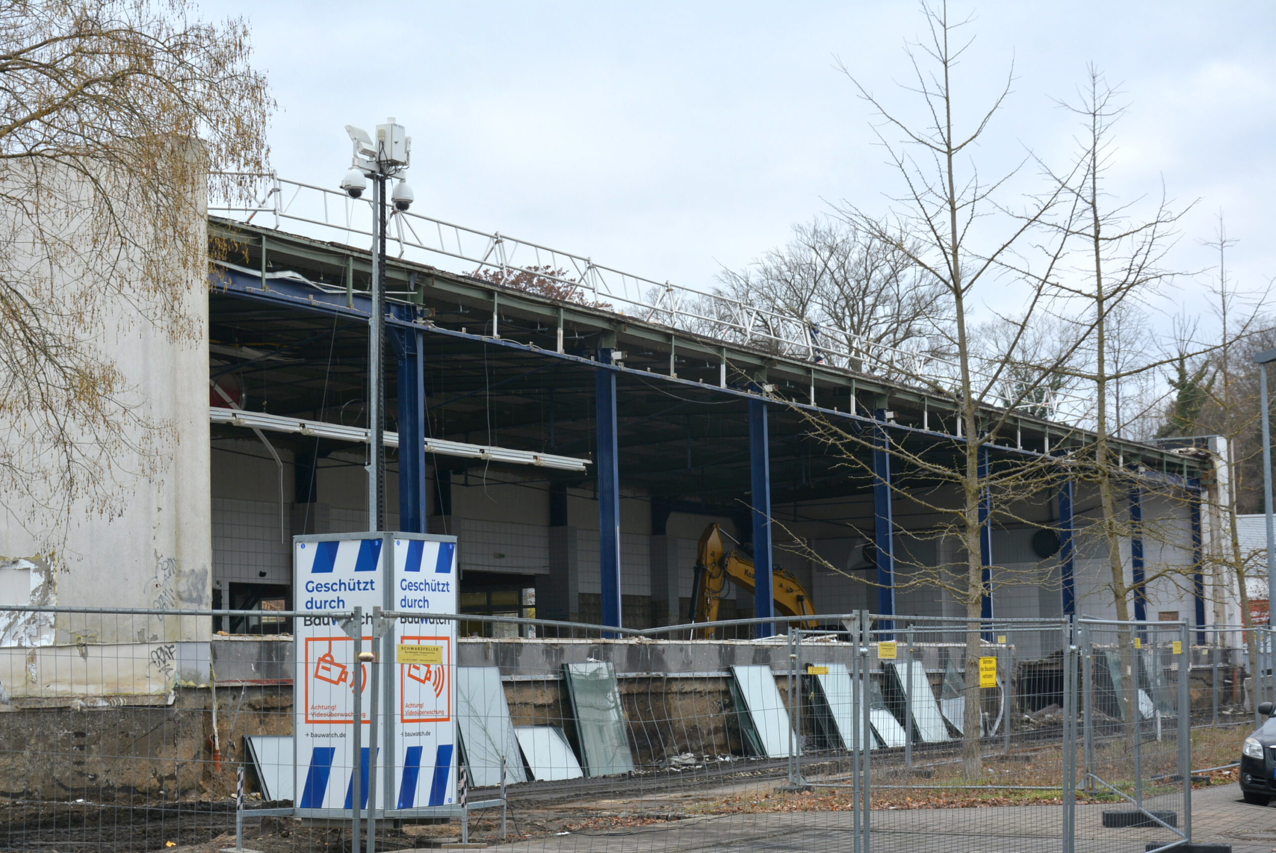 Anfang des Jahres wurden die Innenräume der Schwimmhalle komplett entkernt und die Glasfassade entfernt. Im Sommer 2027 soll die neue Schwimmhalle eröffnet werden.